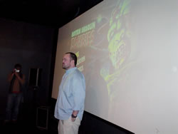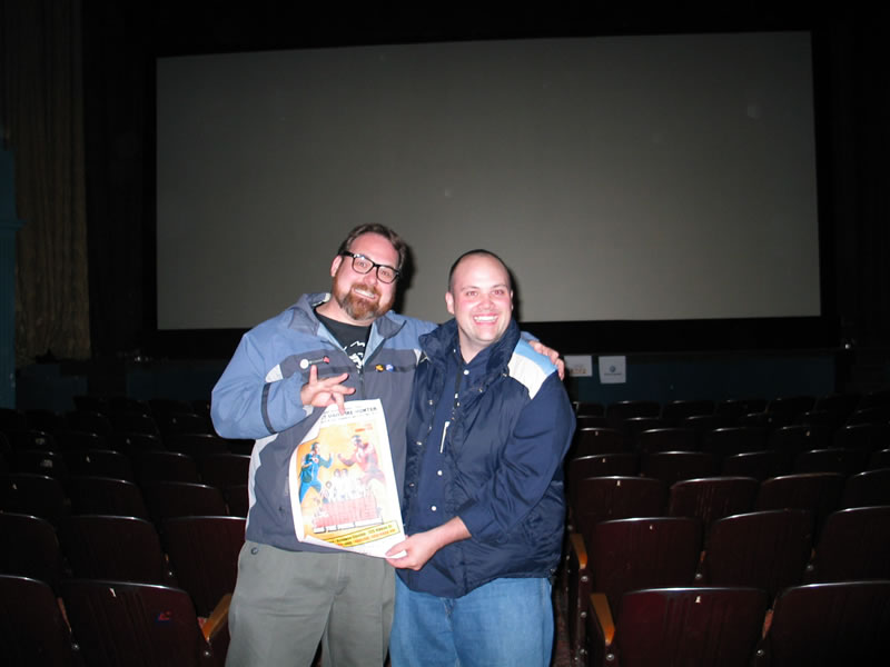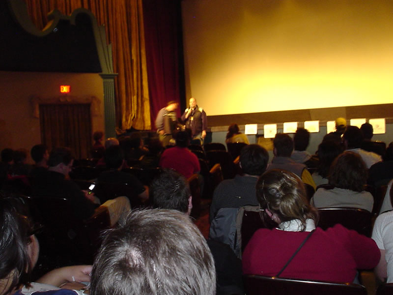 Woo-hoo - it's now the day after the biggest screening of RSZ yet: the midnight crowd at the Calgary International Film Festival! Maybe 200-odd people (maybe more!) showed up to feast their eager eyes upon the RSZ & Harry Knuckles 1-2 combo - and everyone seemed absolutely delighted! Of course, we were honoured to have our movie screened alongside Lee Demarbre's soon-to-be cult classic "Harry Knuckles & The Pearl Necklace" (click for more info) and we hoped that the audience would be similiar for both films - and our hopes were realized when the entire audience clapped, cheered, laughed & groaned at all the appropriate places during RSZ! Fantastic, absolutely fantastic. Huge thanks to both the Calgary International Film Festival and to Lee Demarbre for making this dream a reality! Enjoy some pics below (click thumbnail to view fullsize photos).